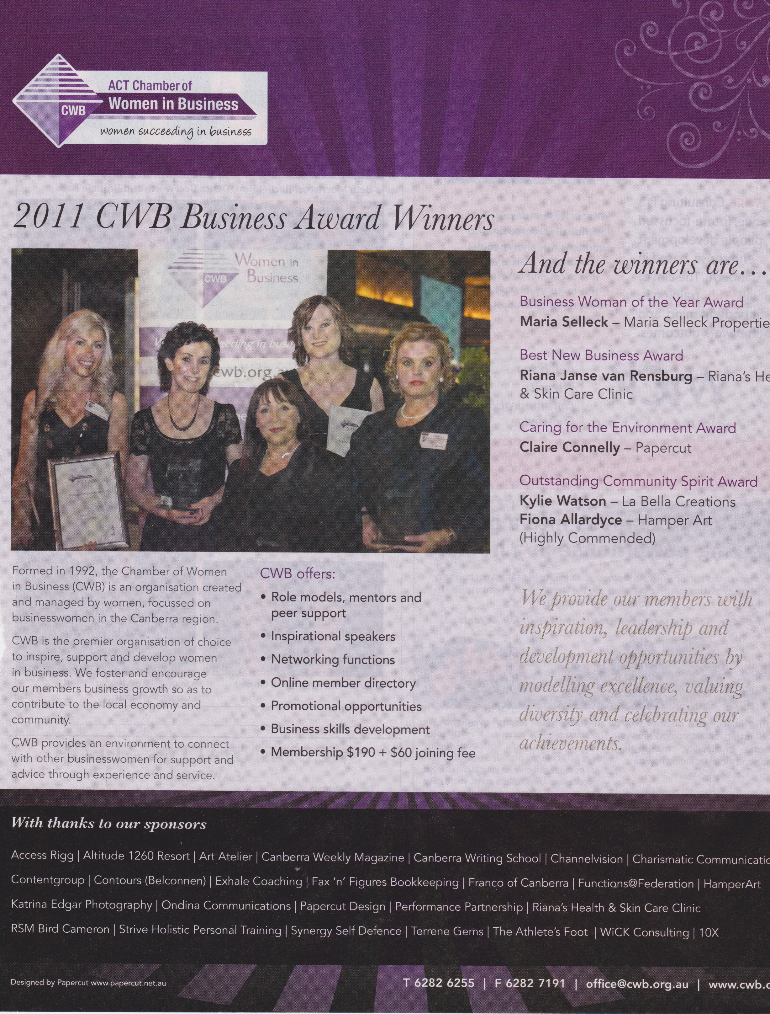 - ACT Chambers of Woman in Business Business Awards