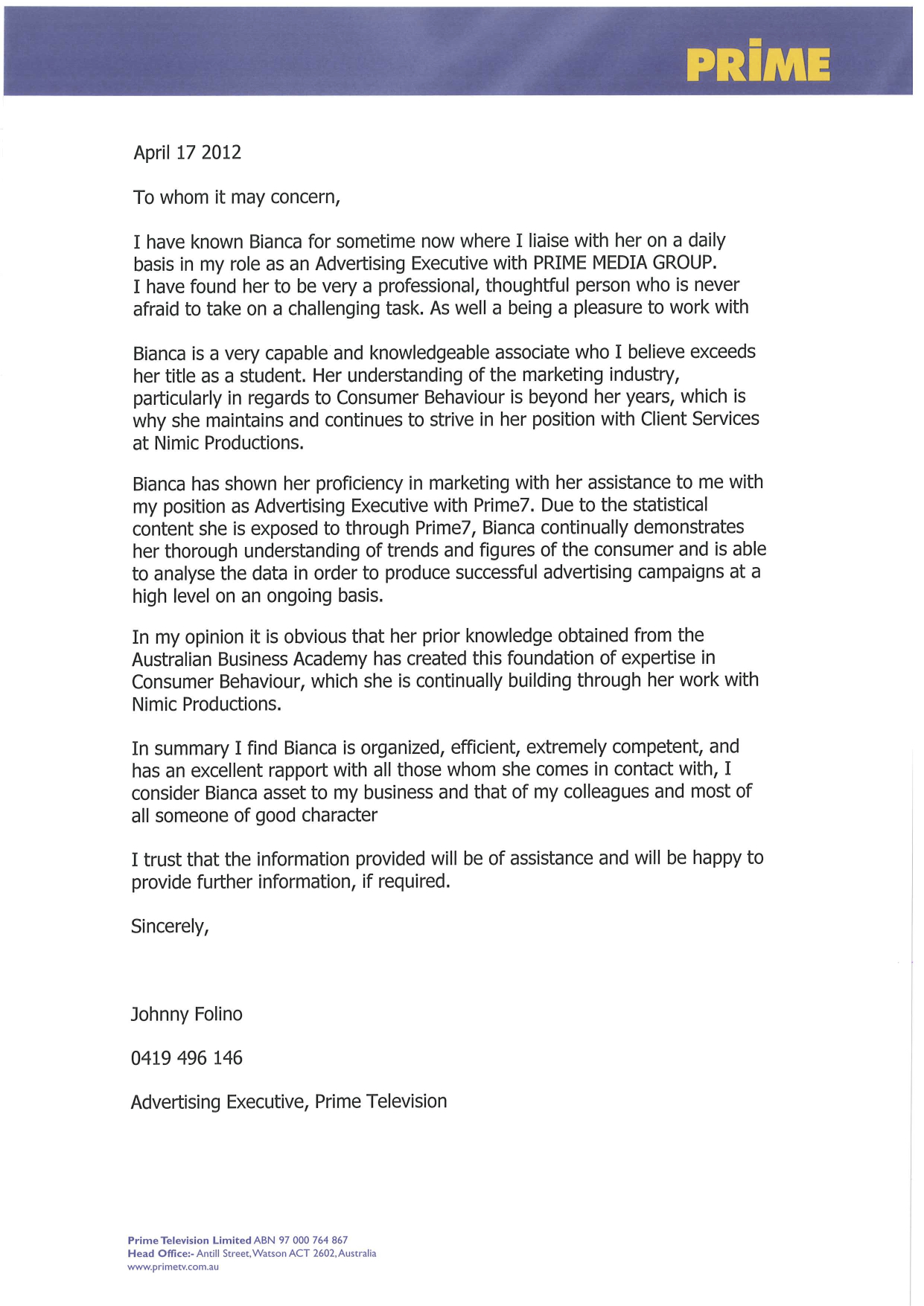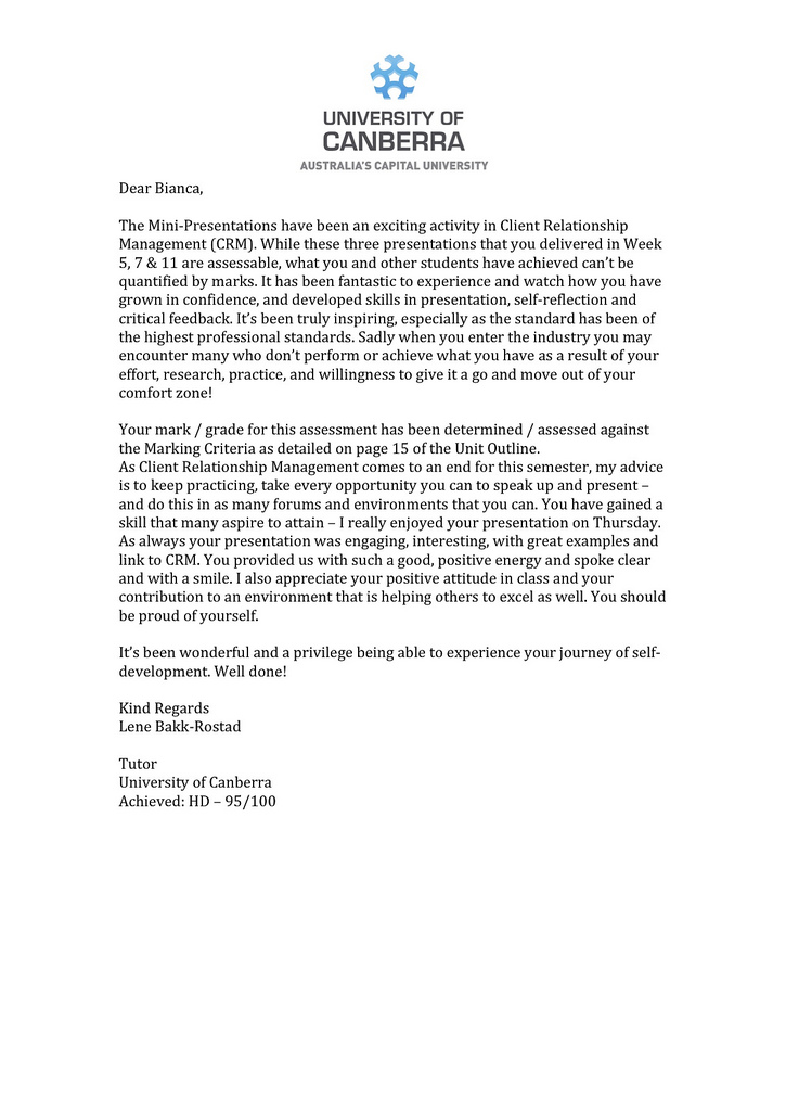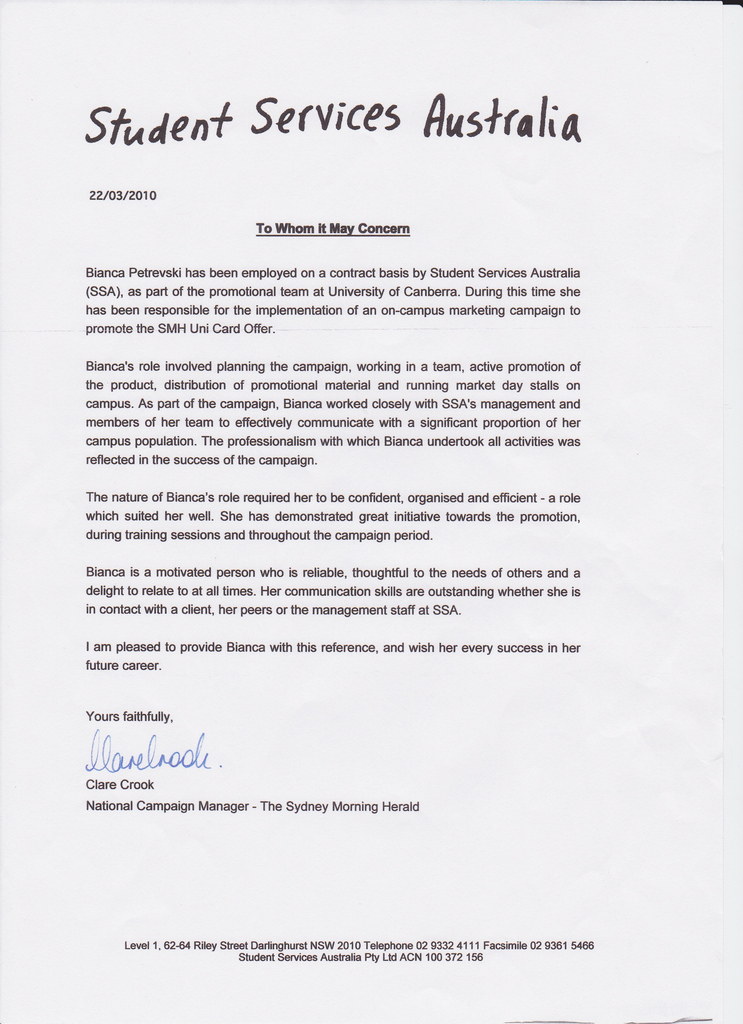 - Reference Given by Student Marketing Australia